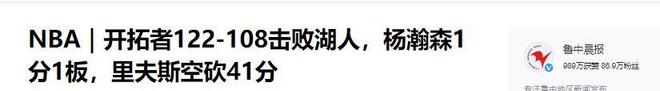 湖人核心里夫斯41分仍输,杨瀚森惨淡表现仅得1分